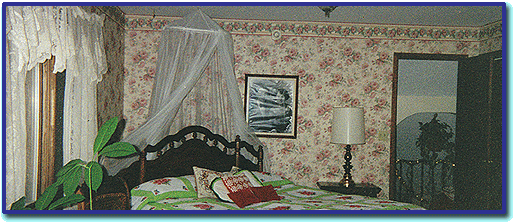 Rose Room - $160 The Rose Room with king-sized bed with indoor balcony and view overlooking the gardens. This room includes a private bath and is air-conditioned. Our most romantic room!